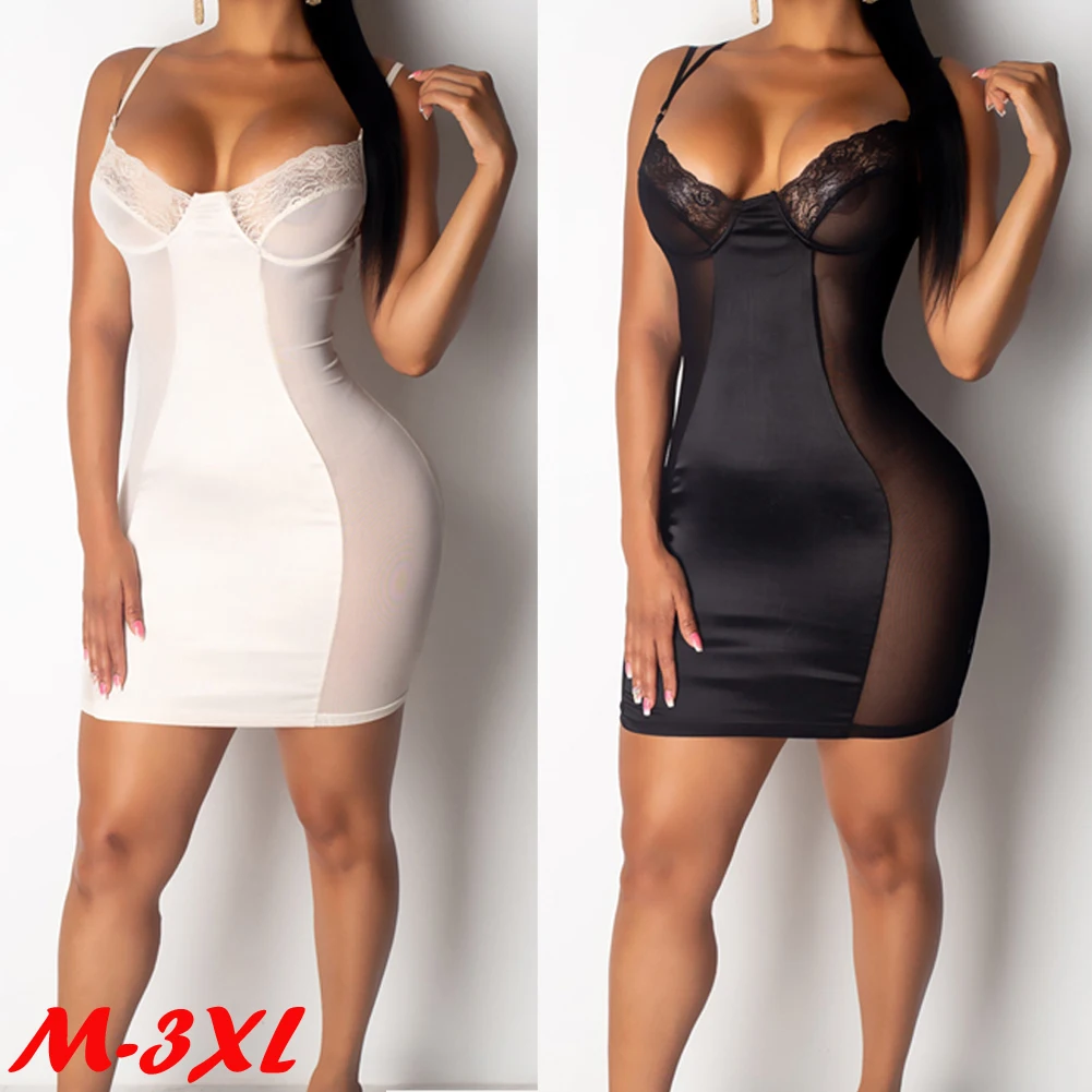 0 Response to "Women Sleeveless Casual V Neck Mesh Sheer Lace Bandage Bodycon Evening Party Club Mini Dress Slim Sexy plus size M-2XL"