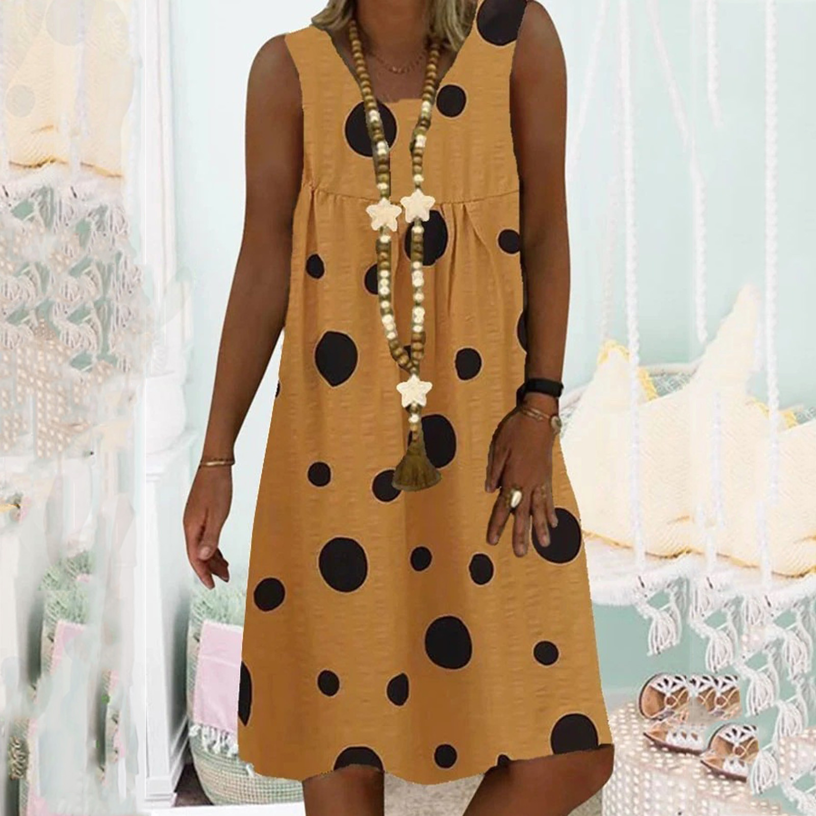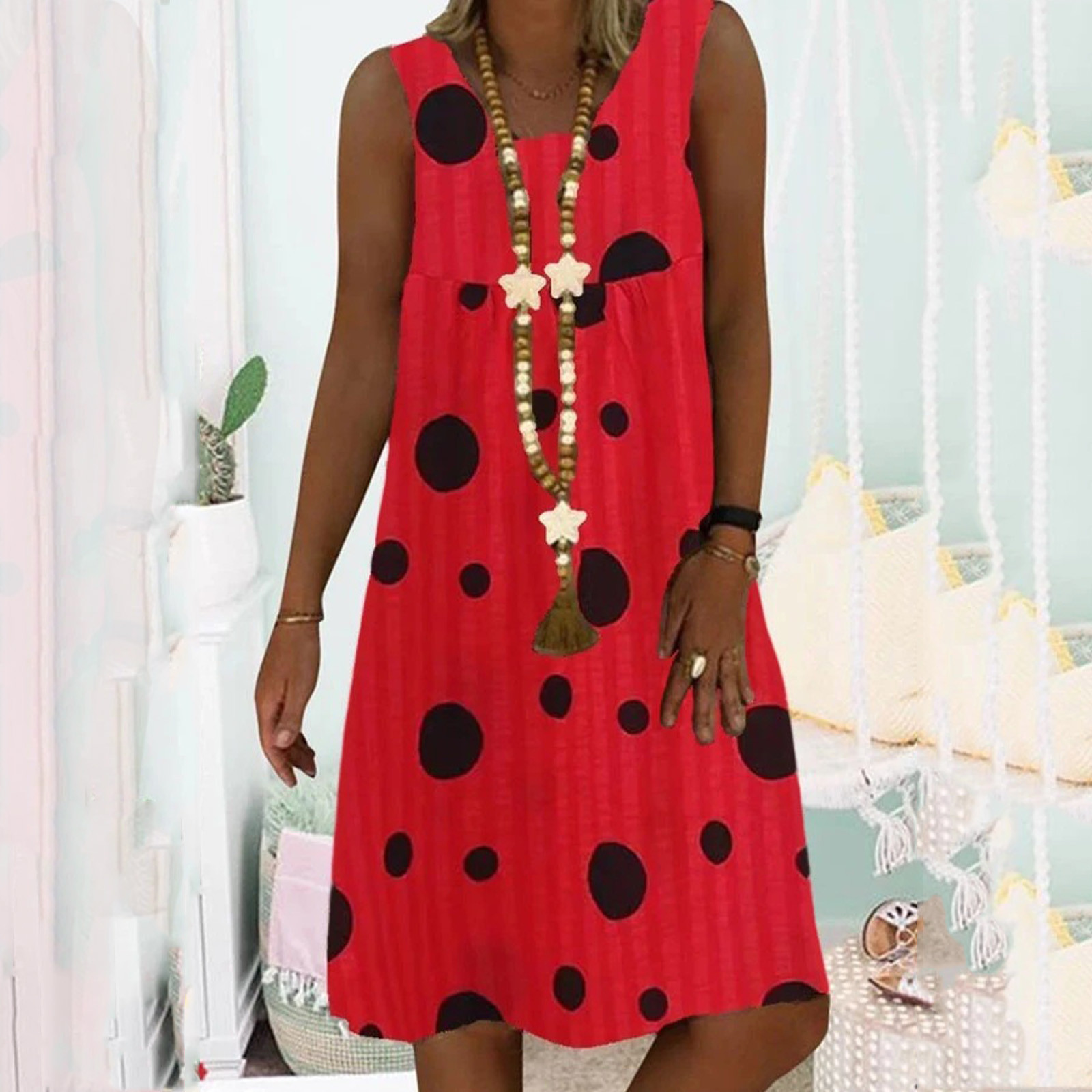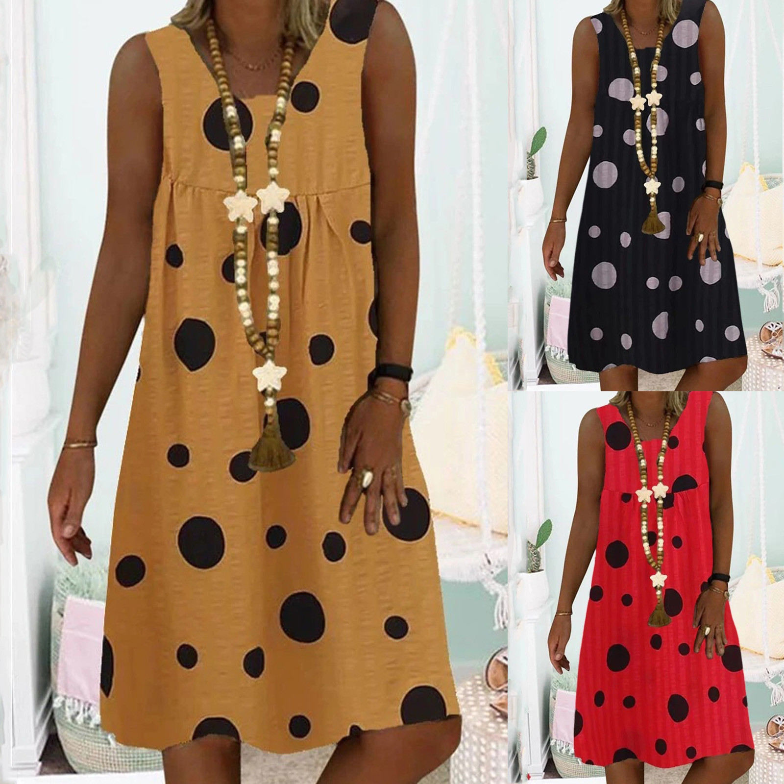 Buy Women Summer Dress Plus Size Point Print Daily New Ladies V-Neck Sleeveless Loose Vintage Bohemian Dress 2021 платье летнее Right Here and Right Now and You will save USD 4.94 or 71%%, Because price is will changed at any time without notice, or stock may be run out, If You Buy Now You Just Pay For 2.02, not in Reguler Price at 6.96. Yap! This is I mean you will Save 71% % / USD 4.94